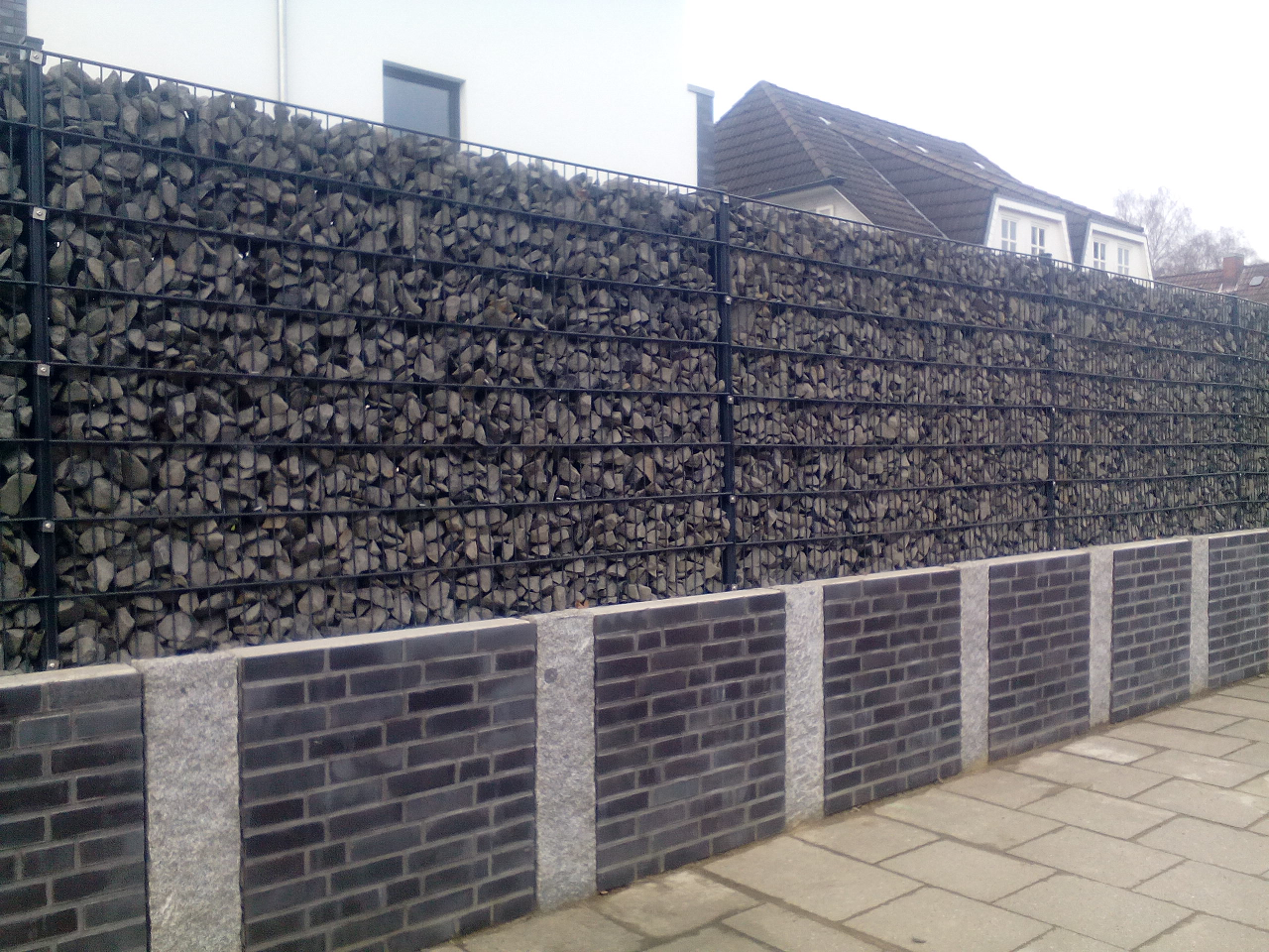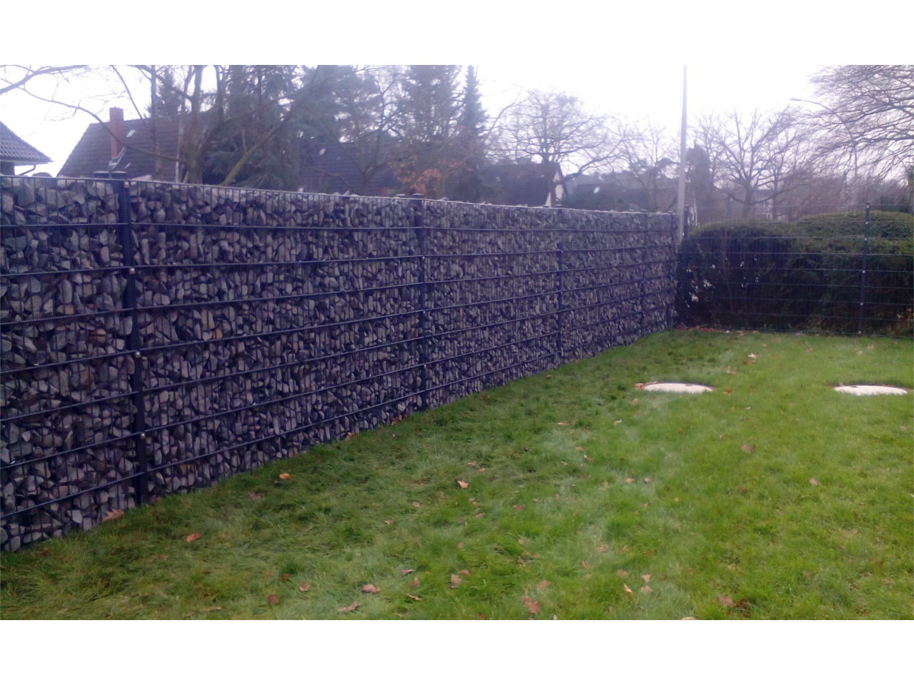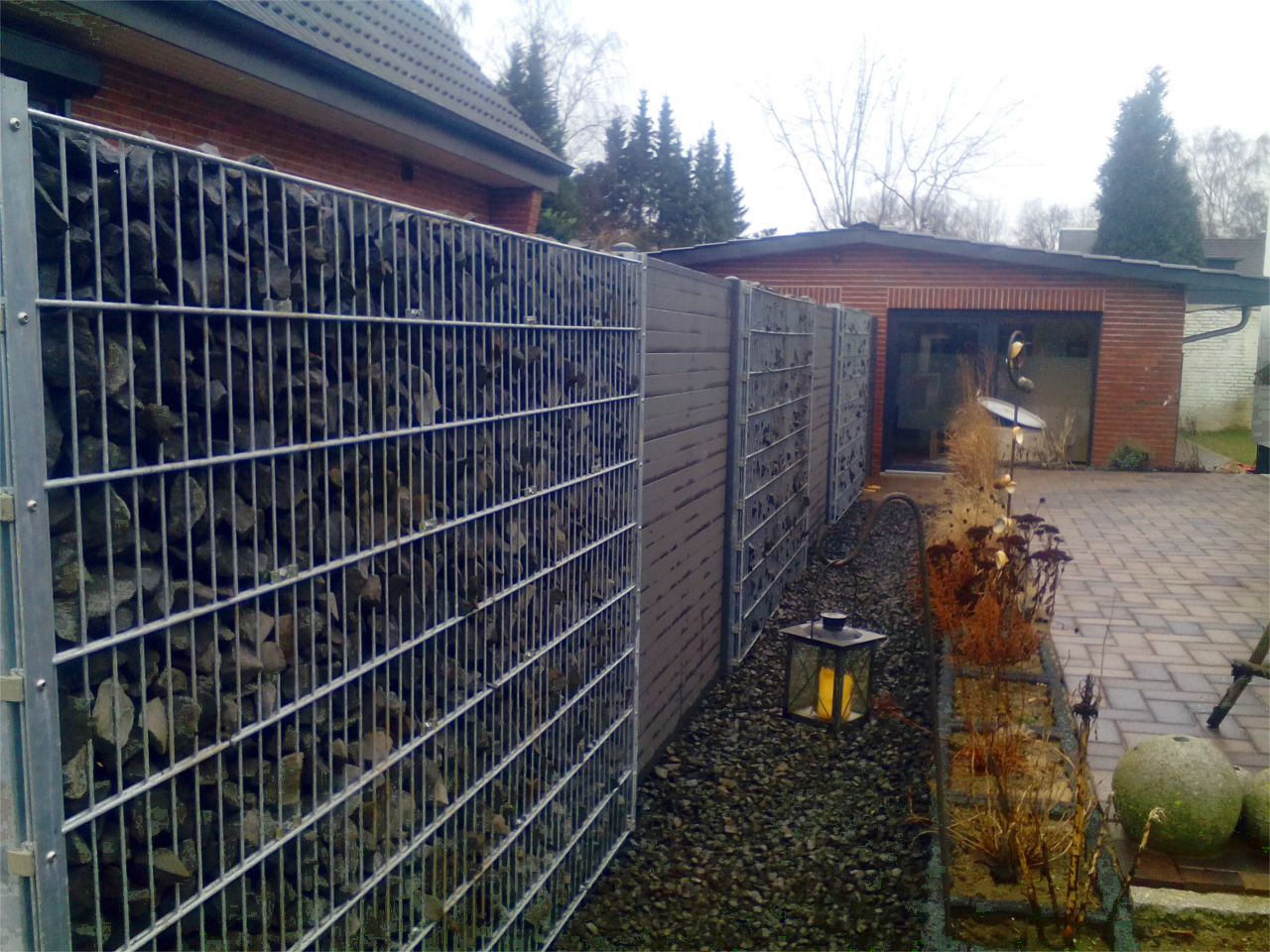 Zaunanlagen oder auch Sichtschutzzäune können z.B. als Gabionen, Doppelstabmatten mit Flechtstreifen oder aus Holz aufgebaut werden, sehen gut aus und erfüllen Ihren Zweck. Trockenmauern aus Natur- oder Betonsteinen verleihen dem Grundstück ein ländlich, idyllisches Gefühl.